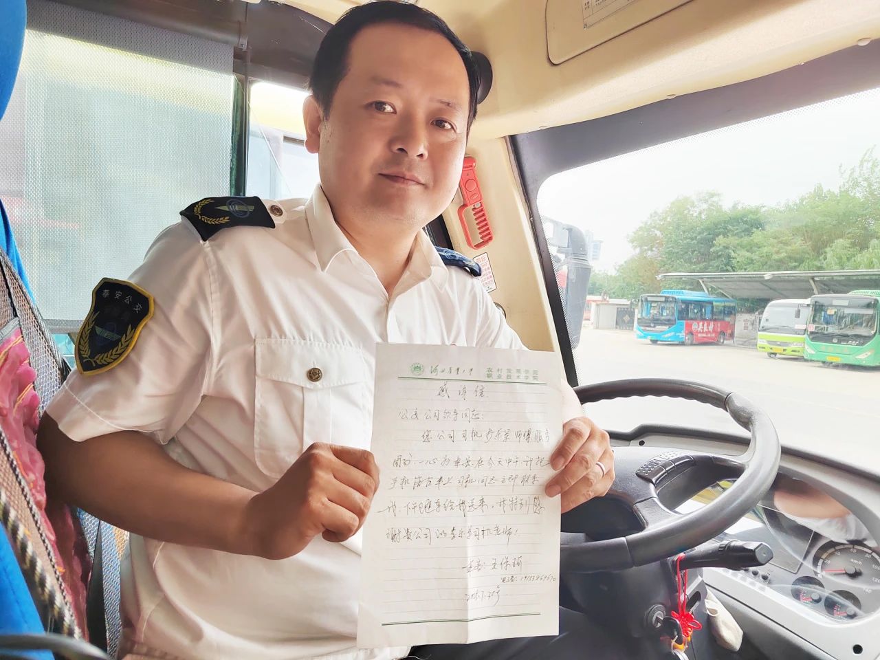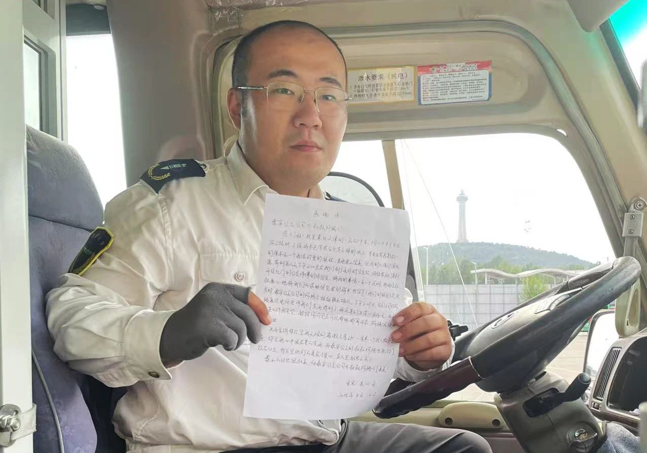 耐心安撫好孩子后,李樂軍引導(dǎo)孩子將電話交給家長,順利與王先生取得聯(lián)系。并在恒大城公交站將手機交給王先生。王先生從李樂軍手中接過手機,激動得連聲道謝。為了表達這份感激,他特意寫下感謝信,親自送到第一分公司。