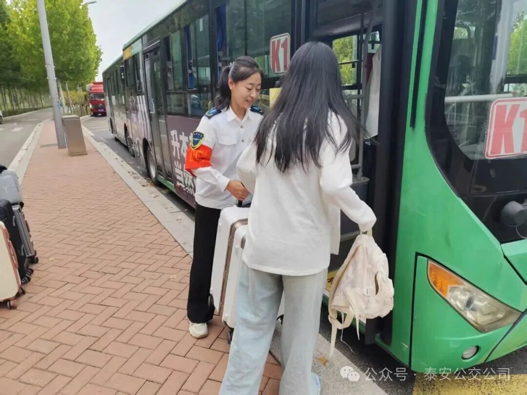 保障泰山科技學(xué)院學(xué)生出行,是1路公交的一大“重任”。假期前一天,學(xué)校開始放假,學(xué)生們拖著行李箱、背著書包涌向公交站,前往泰山火車站,1路公交車成為他們回家路上的重要依靠。