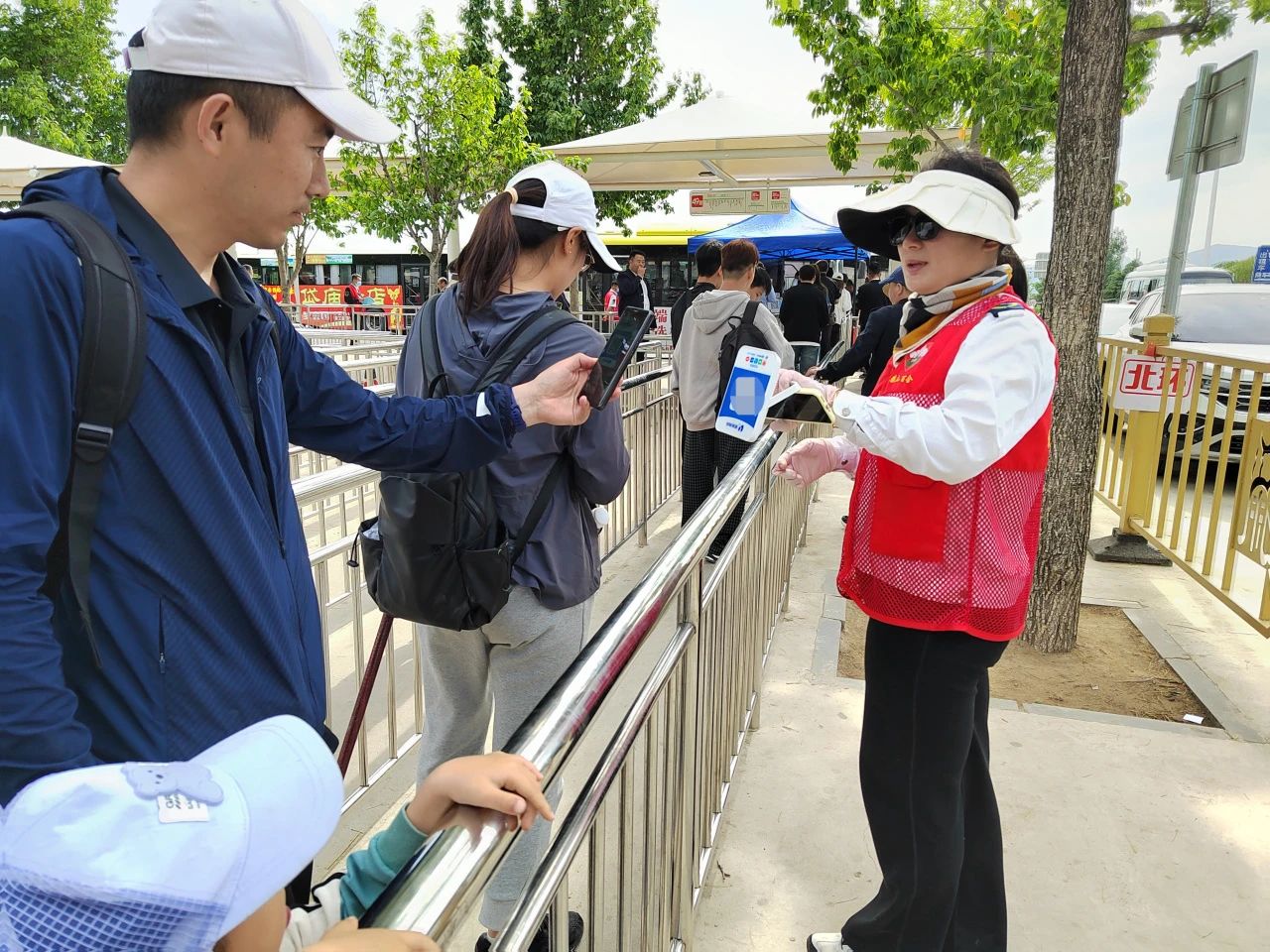 張秀貞除了承擔(dān)線路營運任務(wù),還時?;碇驹刚撸趽頂D的站臺維持秩序。面對激增的客流,她始終保持高度的耐心與細心。為方便乘客從桃花峪游客中心前往市區(qū),分公司及時調(diào)配加班車輛,張秀貞進行疏導(dǎo)。她穿梭在人群中,溫和地提醒乘客注意安全、有序乘車,遇到需要幫助的乘客,總是毫不猶豫地伸出援手。