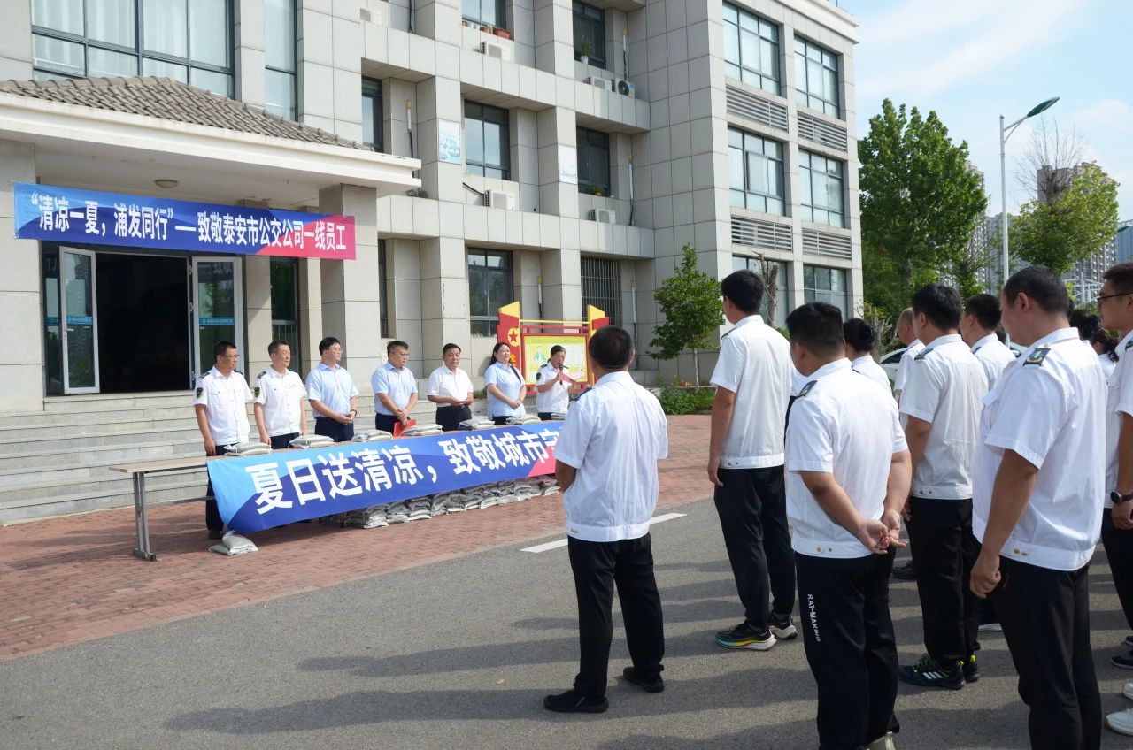 泰安公交黨委書記、董事長、總經(jīng)理徐躍為本次活動致辭。他代表公司全體職工,向浦發(fā)銀行泰安分行表達(dá)了感謝。他指出,高溫季堪稱公交運(yùn)營的“硬仗期”。駕駛員緊握方向盤,每日穿梭于城市街巷,在密不透風(fēng)的駕駛室內(nèi),直面高溫“烤”驗(yàn),每一次平穩(wěn)駕駛的背后,都是對體力與耐力的嚴(yán)苛挑戰(zhàn);維修工則俯身車底,在烈日的炙烤下,仔細(xì)檢修車輛,不放過任何一處安全隱患,用專注與專業(yè)保障車輛安全,為城市交通的順暢運(yùn)行筑牢根基。正是他們的默默堅(jiān)守與無私奉獻(xiàn),換來了城市交通的井然有序。此次攜手浦發(fā)銀行開展“送清涼”活動,不僅是公司對職工的深切關(guān)懷,更是對大家辛勤付出的高度認(rèn)可與敬意表達(dá)。希望今后社會各界能給予公交工作者更多地關(guān)注與支持,攜手營造尊重勞動者、關(guān)愛勞動者的良好氛圍,共同為城市的和諧發(fā)展貢獻(xiàn)力量。