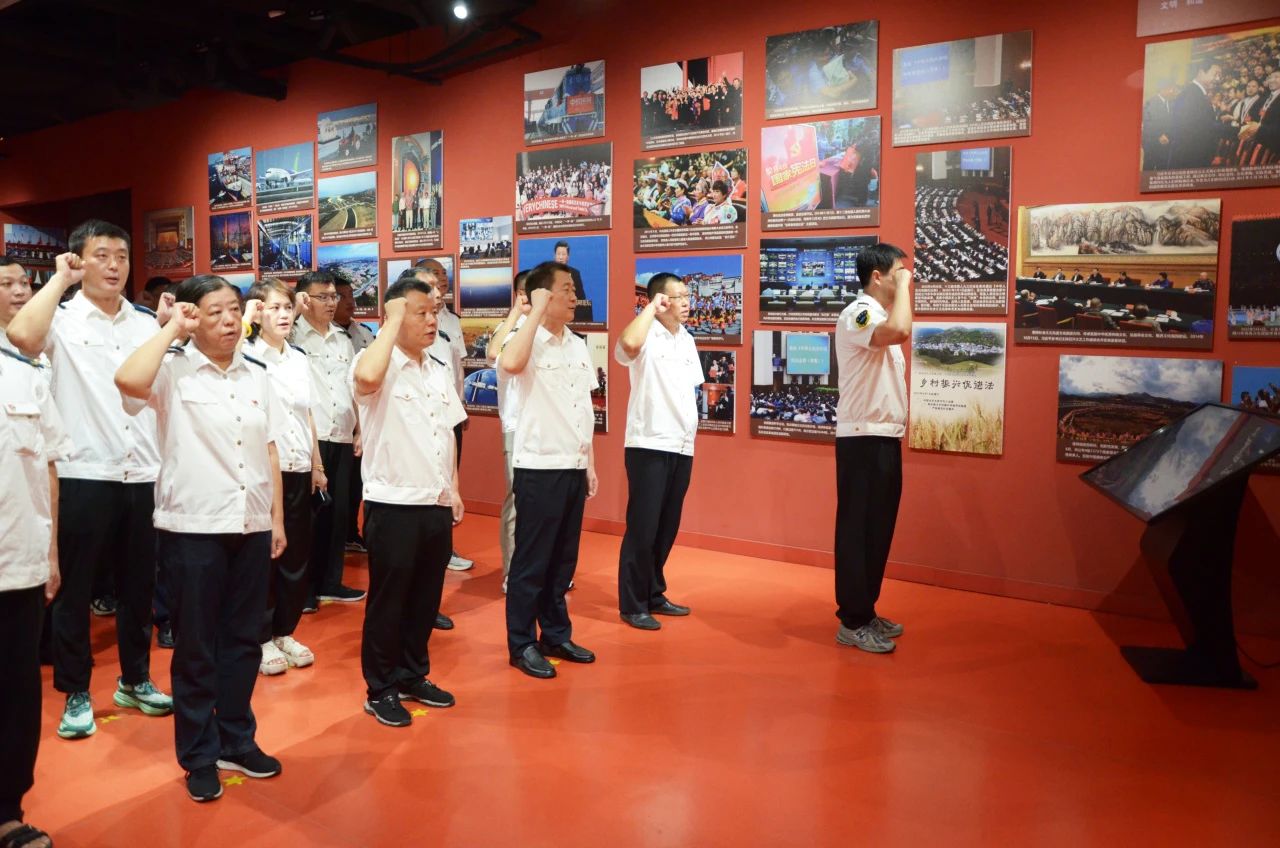 在宣誓廳,全體黨員面向鮮紅的黨旗,高舉右拳鄭重宣誓:“我志愿加入中國共產(chǎn)黨…… 隨時準(zhǔn)備為黨和人民犧牲一切,永不叛黨。” 鏗鏘有力的誓言在展廳內(nèi)回蕩,字字千鈞,既表達(dá)了對革命先烈的緬懷,更彰顯了全體黨員不忘初心、牢記使命,為共產(chǎn)主義事業(yè)奮斗終身的堅(jiān)定信念。